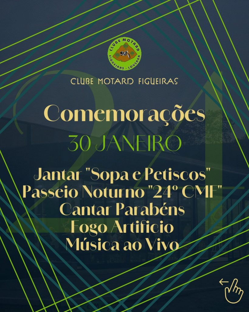 O Clube Motard Figueiras prepara-se para celebrar o seu 24º aniversário, na próxima sexta-feira, dia 30 de janeiro. A comemoração promete juntar motards, amigos e a comunidade em geral num fim de semana recheado de convívio e diversão.